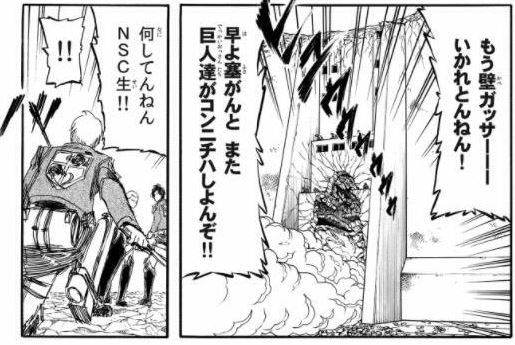 「早よ塞がんとまた巨人達がコンニチハしよんぞ!!」